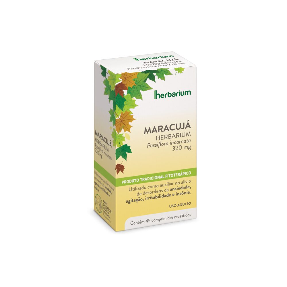 MARACUJÁ HERBARIUM - Passiflora incarnata 320 mg. INDICAÇÕES: Para tratar estados de irritabilidade, agitação nervosa, tratamento de insônia e desordens da ansiedade. CONTRAINDICAÇÕES: Gravidez, lactação e menores de 12 anos de idade. ADVERTÊNCIAS: Em caso de hipersensibilidade ao produto, recomenda-se descontinuar o uso e consultar o médico. Não utilizar junto a bebidas alcoólicas. Também não deve ser associado a outros medicamentos com efeito sedativo, hipnótico e anti-histamínico. MS: 1.1860.0025.MARACUJÁ HERBARIUM É UM MEDICAMENTO. DURANTE SEU USO, NÃO DIRIJA VEÍCULOS OU OPERE MÁQUINAS, POIS SUA AGILIDADE E ATENÇÃO PODEM ESTAR PREJUDICADAS.